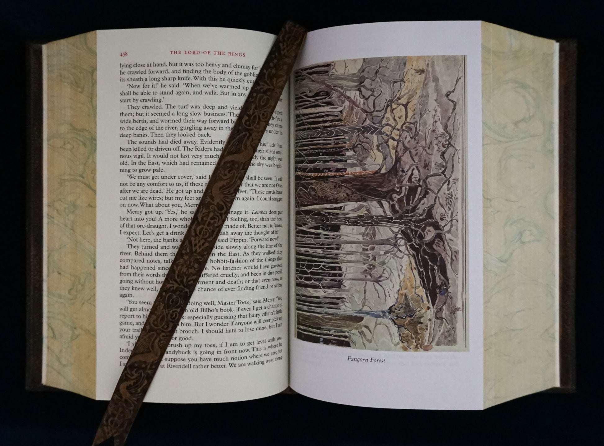 This edition of The Lord of the Rings has been bound using high-quality, hand-dyed Italian leather. Each section is hand sewn, ensuring durability and longevity—crafted to be cherished and passed down through generations.